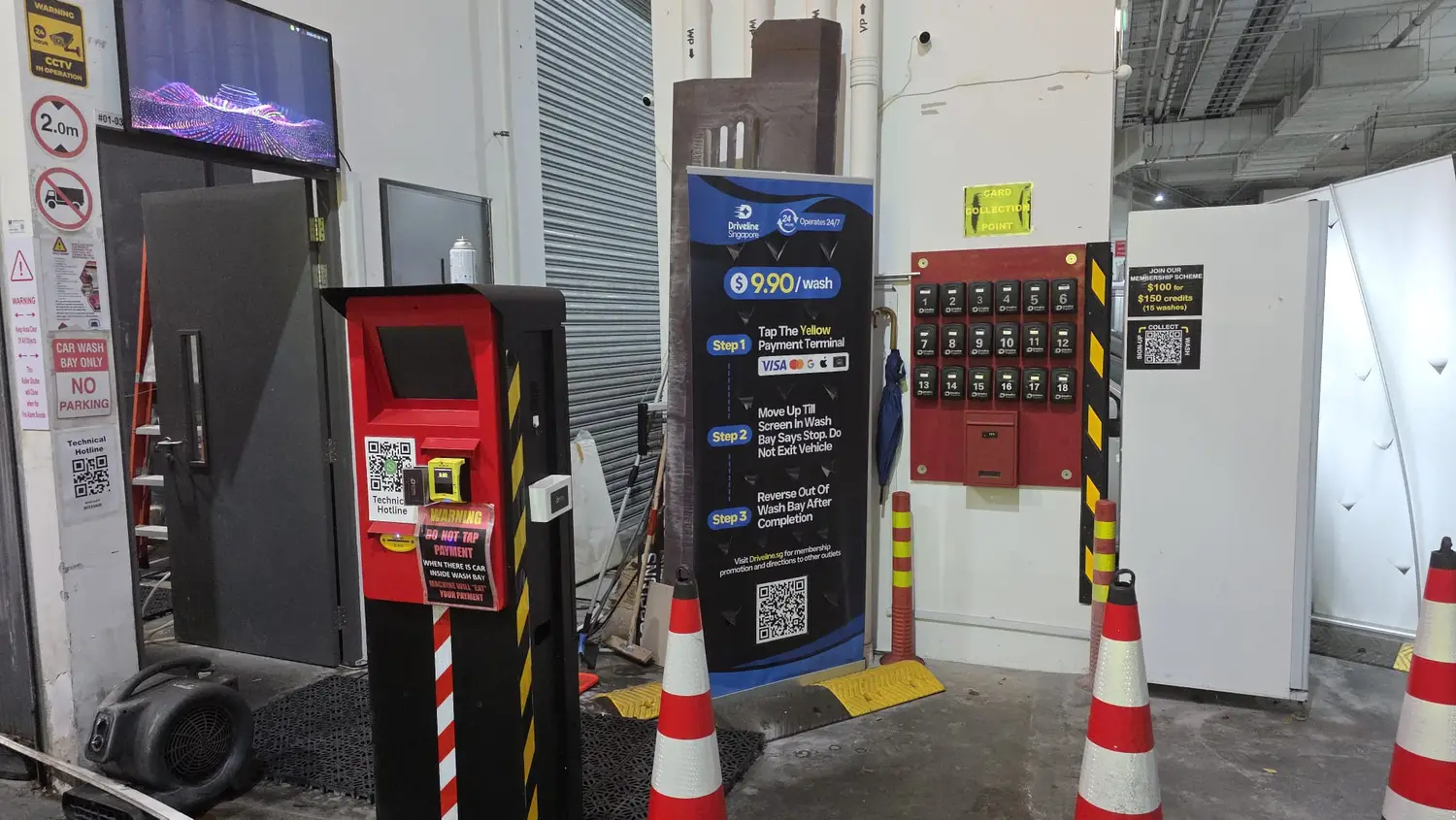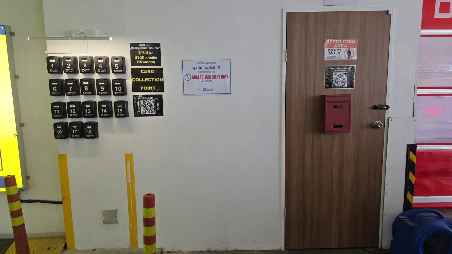 ALWAYS wait for the wash bay to be completely empty and the shutter/barrier to be fully open before tapping your card. Tapping while another car is inside can cause system errors or your money to be "eaten"